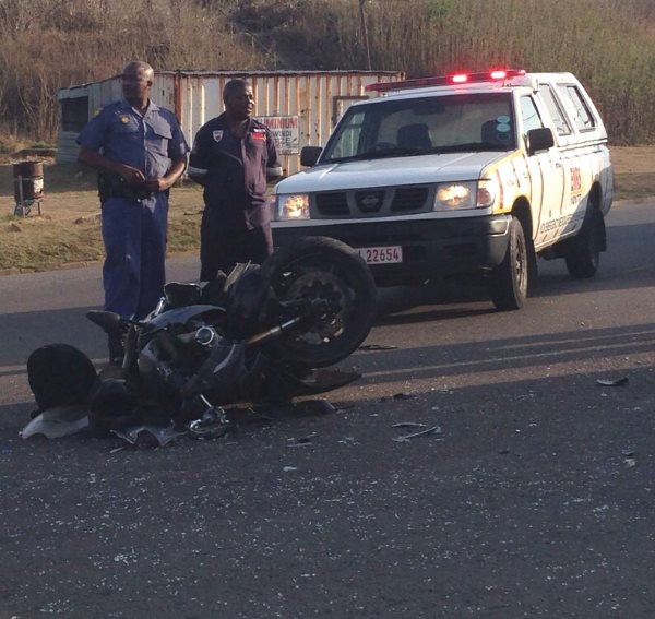 The accident occurred on the M25 passed Inanada, north of Durban, earlier this morning. The collision was between a motor bike and a minibus. Paramedics from KZN EMS and a private ambulance service responded to the accident and found the biker in a serious condition with several injuries sustained during the collision. None of the occupants in the minibus were injured. The paramedics, worked together to treat the man on scene, providing the necessary emergency medical care, to stabilize the man.